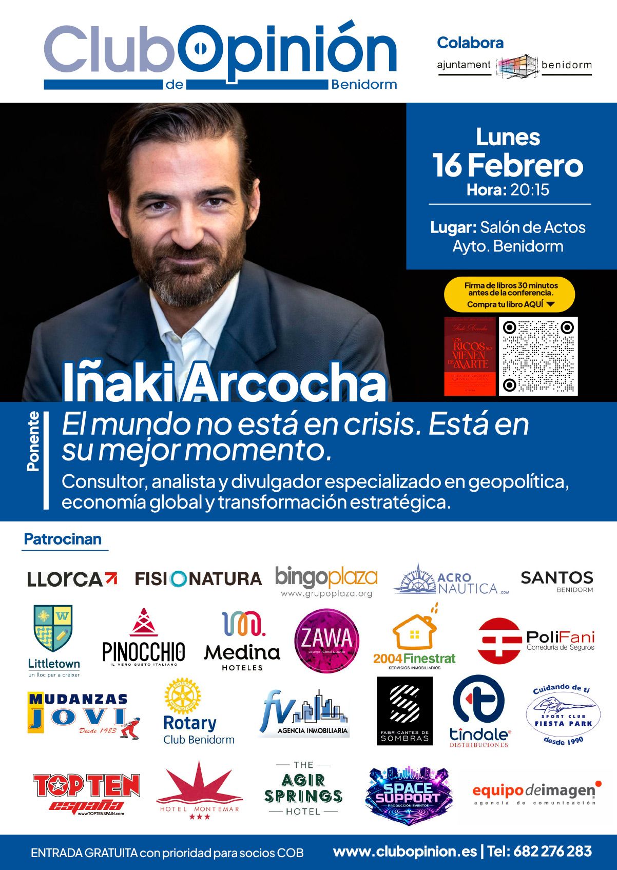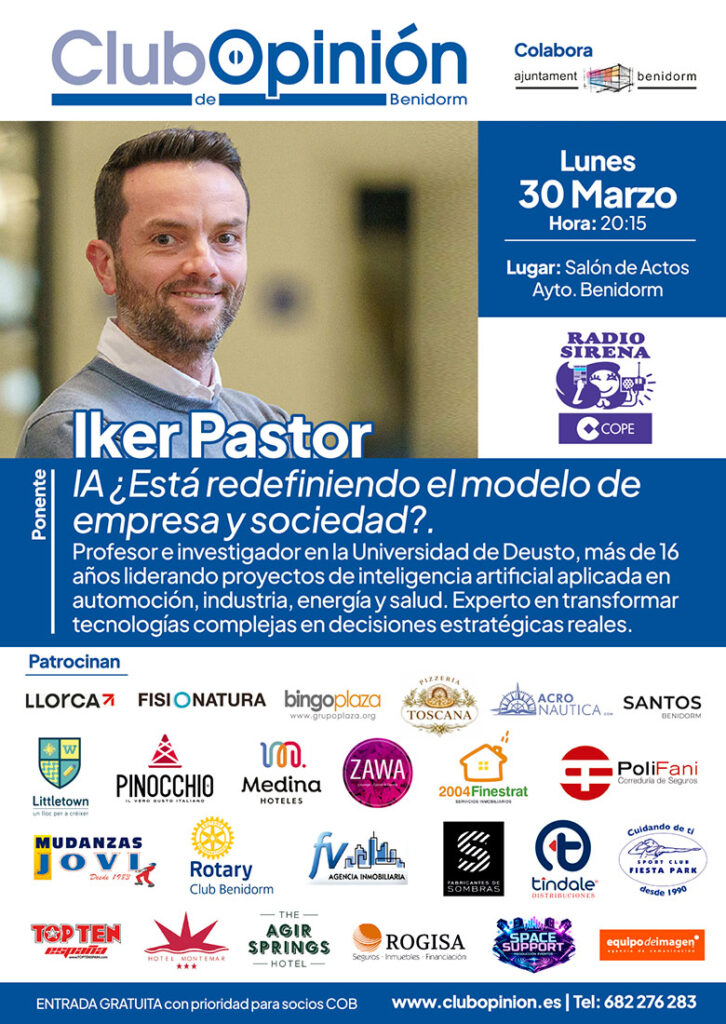 El lunes 16 de febrero, el Club de Opinión de Benidorm te invita a una conferencia imprescindible con Iñaki Arcocha, consultor y analista especializado en geopolítica, economía global y transformación estratégica.