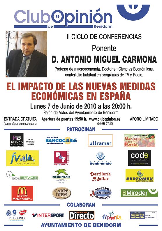 Próxima conferencia: D.ANTONIO MIGUEL CARMONA – «EL IMPACTO DE LAS NUEVAS MEDIDAS ECONOMICAS EN ESPAÑA» 31 mayo 201022 junio 2016 Club de Opinión Benidorm General