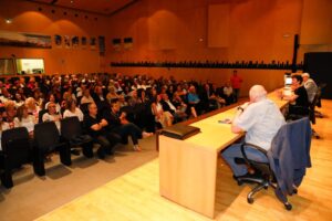 Amparo López al inicio de su conferencia hizo un repaso sobre la ciencia de los alimentos «su pasión», un campo excelente aunque no se le ha dado la importancia que tiene, aseguró la ponente, añadiendo que se dedica a la ciencia «porque cada día es diferente, poder plantearte retos diarios es un desafío y maravilloso». Compartir conocimiento es también muy importante y para Amparo López la ciencia es su «Ikigai» («un concepto japonés que no tiene una traducción literal, pero puede definirse como «la razón de vivir» o «la razón de ser», lo que hace que la vida valga la pena ser vivida»), un término que aúna diferentes conceptos, y destacó que invertir en ciencia, tecnología e investigación «es clave para mejorar no sólo el rendimiento económico, sino el bienestar de un país». Expresó sobre todo la necesidad de invertir en Ciencia, en todos los aspectos y también sobre la importancia de trasladar la ciencia y todas sus claves a los niños y los jóvenes a través de la enseñanza y la educación.