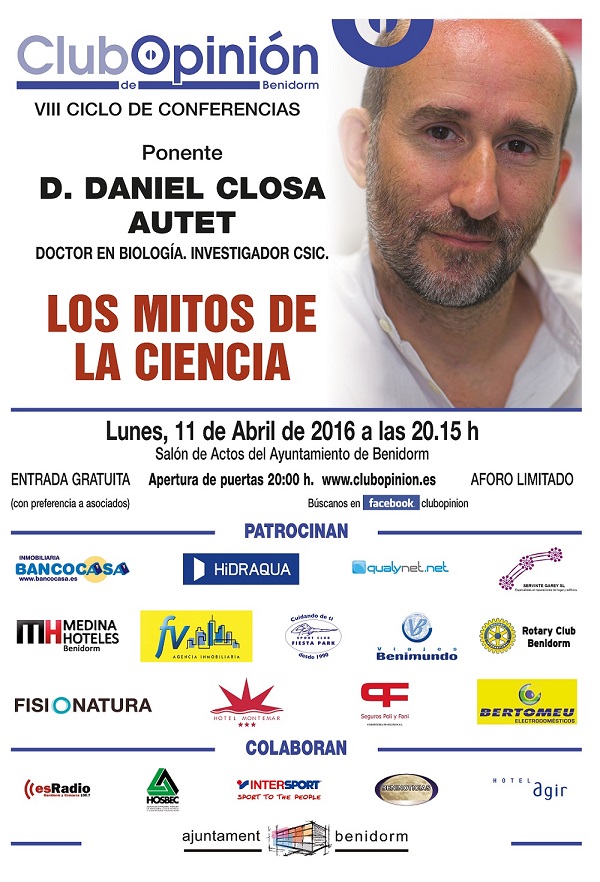 El próximo lunes 8 de marzo contaremos con la presencia de D. Daniel Closa Autet, doctor en biología e investigador del CSIC.