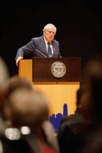 En su conferencia Javier Rupérez ha hablado sobre la caída de la Unión Soviética, y de la caída del muro de Berlín «un muro que cayó porque lo tiraron los propios ciudadanos, porque el sistema de la Alemania del Éste estaba ya cuarteado».