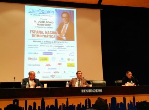 El pasado Miércoles 2 de Febrero, dentro de la programación del Club de Opinión Benidorm, se impartió la conferencia “España, nación democrática” a cargo de D. José Bono, personaje de primera magnitud dentro del panorama político español de los últimos treinta años no sólo como diputado y ministro en las legislaturas del PSOE sino también como protagonista institucional en su presidencia del Congreso de los Diputados.